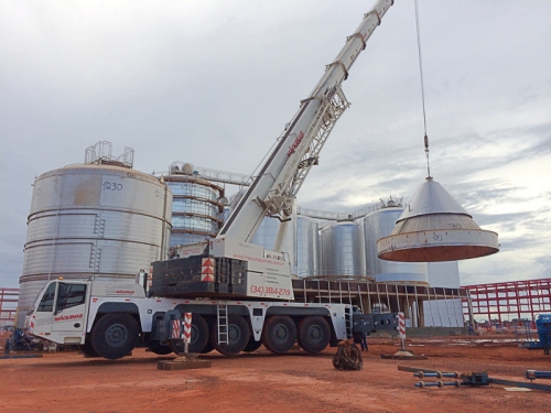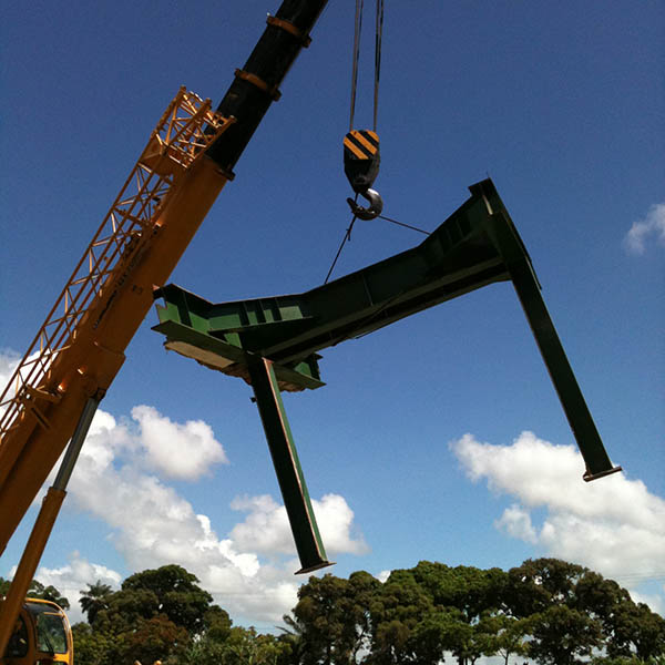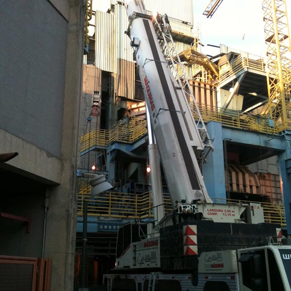 Nosso setor de içamento de cargas fará total movimentação e encaixe de todas as estruturas e peças pesadas e com o auxilio do time de riggers e engenheiros que conta com pórticos, muncks e guindastes que atendem uma demanda de até 800 ton.